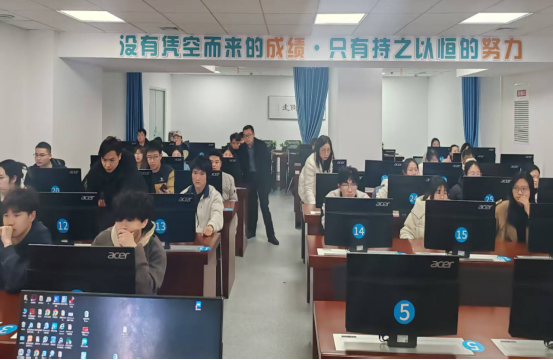 走进考试现场,五十台高性能计算机整齐排列,每台设备均经过技术人员的全面调试,预先清除了所有与考试无关的软件程序,仅保留人卫题库唯一访问网址,从技术层面切断了学生访问其他资源的可能。确保考试顺利进行,教学办与信息科提前制定了应急预案,针对可能出现的网络故障、设备问题等情况,信息科安排资深工程师全程护航,配合监考老师做好技术支持、现场巡视等工作,形成“双重监管”闭环。