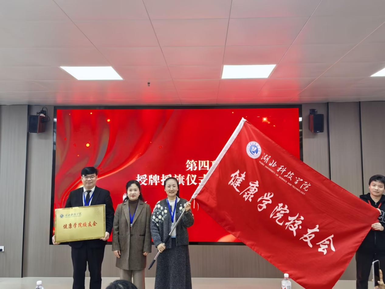 随后举行的授牌授旗暨聘书颁发仪式将现场氛围推向高潮。健康学院校友会第一届理事会18名成员接过沉甸甸的聘书,接过的是荣誉,更是责任与担当。