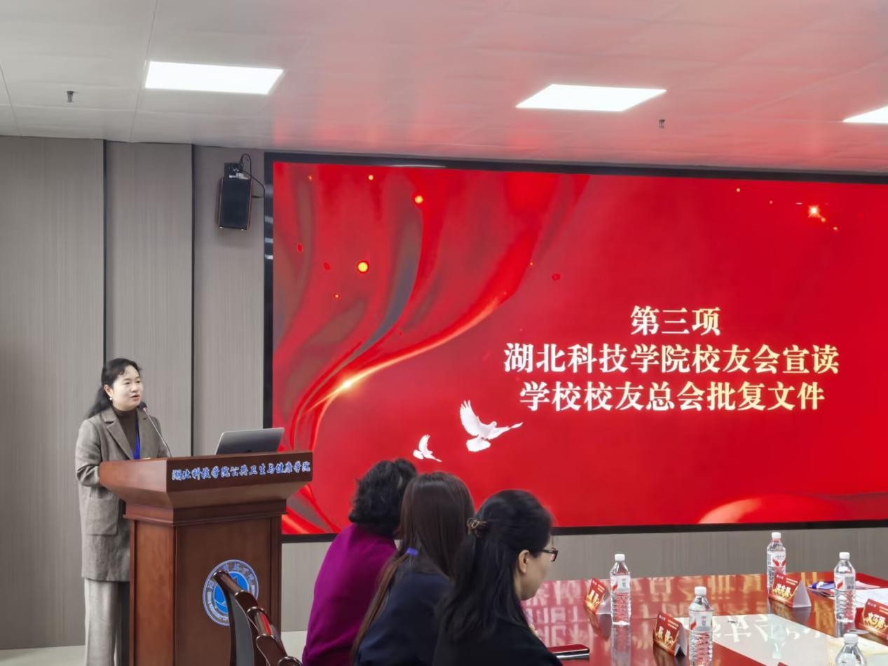 湖北科技学院校友会副处长刘芳宣读了学校校友总会关于成立健康学院校友会的批复文件,标志着我院校友会工作步入规范化、制度化轨道。