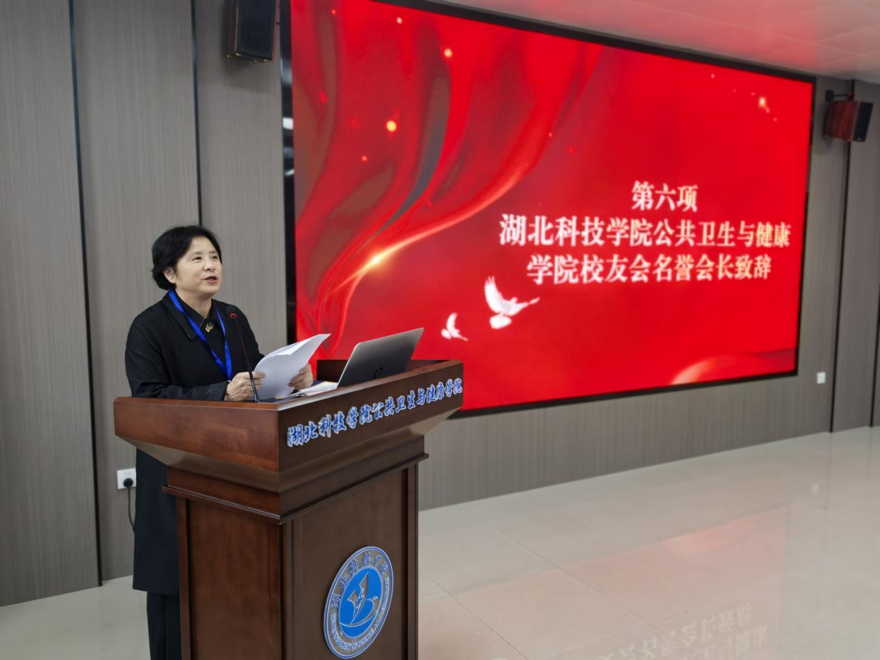 名誉会长——湖北科技学院公共卫生与健康学院院长陈子敏在讲话中强调,校友是学院最宝贵的财富,是学院发展的重要支撑。她希望校友会能成为连接母校与校友的桥梁,推动资源共享、合作共赢。