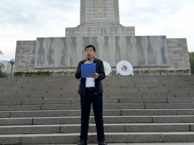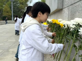 绕行纪念碑时,师生们手持菊花敬献,驻足凝视浮雕上的战斗场景,仿佛重回战火纷飞的年代。活动最后,师生们合影留念,并参观烈士纪念馆,通过珍贵文物与生动图片,深入了解革命历史。