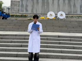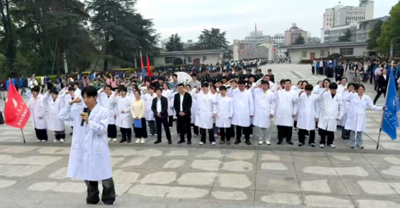汪院长在讲话中嘱托师生,要将先烈的爱国情怀与奋斗精神融入学习生活,成为有理想、有本领、有担当的时代新人。学生代表苏嘉权表示,将以先烈为榜样,传承红色基因,为实现中国梦贡献青春力量。随后,全体同学高举右拳,庄严宣誓,医学生誓言在陵园上空回荡,彰显着青年学子的使命与担当。