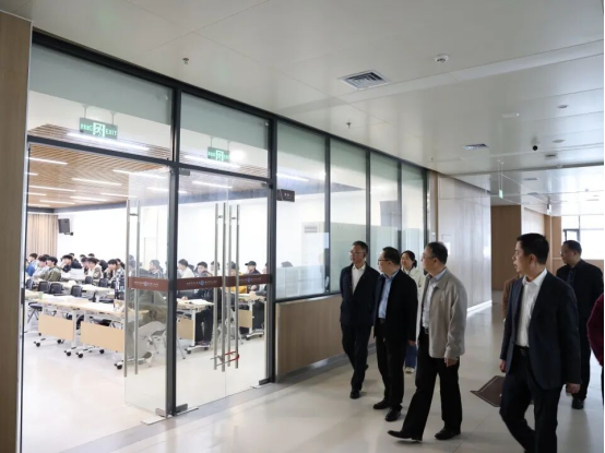 交流团现场了解了我院药学、口腔、眼视光、影像、护理等专业的医疗、教学、科研等情况,并实地查看了老年人一站式服务中心、数智化病理中心、急诊医学科、核医学科等业务开展情况。在临床技能培训中心和学生宿舍,交流团还详细了解学生的生活与学习情况。